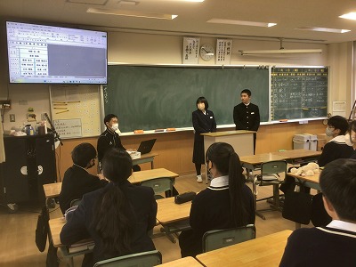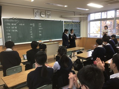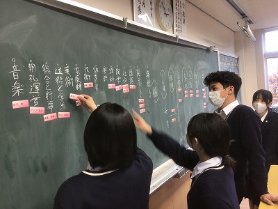 12月5日(金)、1・3校時に2年生の二つのクラスで、大学院生が、古典の研究授業を行いました。