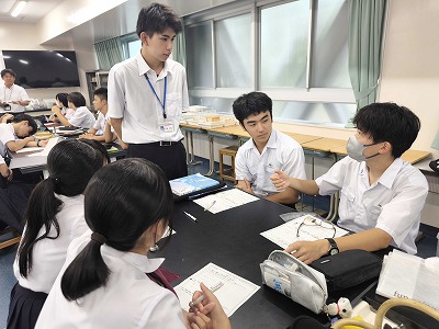 続いて、小中連絡会を行い、生徒たちの学校生活の様子や今年度の入学選考についての説明を聞いていただきました。 新学期のお忙しい中、ご参加いただいた先生方、誠にありがとうございました。今後とも、よろしくお願いいたします。 |