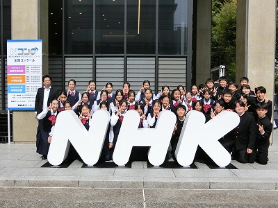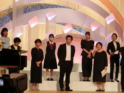 10月13日(月)、東京都のNHKホールにおいて「NHK全国学校音楽コンクール」が開催され、本校のコーラス部37名が参加しました。 全国の各ブロック代表校と合唱の質、技術、表現力を競い合った結果、「優良賞」をいただきました。テレビで視聴された方々は感じたと思いますが、予選を勝ち上がってきた代表11校の歌唱力は大変素晴らしく、「どの学校も金賞!」と思える合唱でした。 全国の舞台で堂々と、心と歌声を重ねる皆さんから、たくさんの感動をもらいました。皆さんは、附属中学校の誇りです。胸を張って学校に戻って来てください。