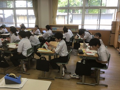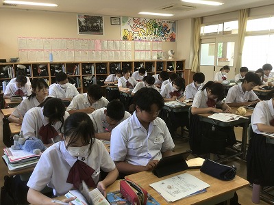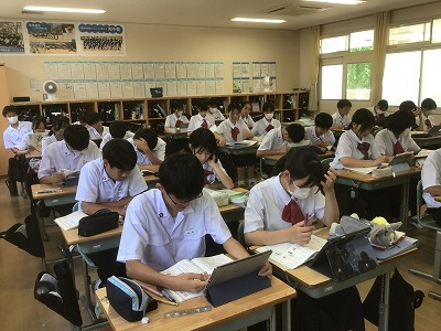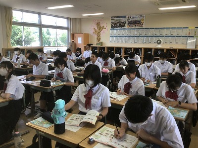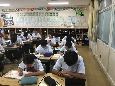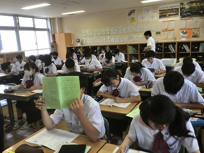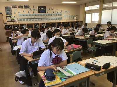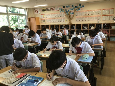 本日の4時間目の授業をのぞいて来ました。来週から実力テストがスタートするので、いつもは積極的な挙手と活発な対話にあふれる附属中学校ですが、どの学年、どの授業も緊張感のある雰囲気で取り組んでいました。 実力テストは、4月からの学習の理解度を確認したり、自己の課題を把握したりする上で大切なものです。今日帰った後、そして土日はたくさん時間があるので、計画をしっかり立てて学習に取り組んでほしいと思います。