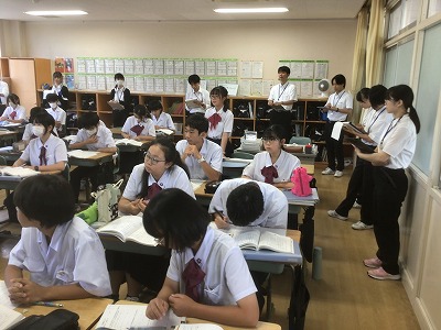 本日3校時の授業をのぞいてきました。 どの教科の授業でも、生徒たちが自分の考えやその根拠をしっかりと持ち、その上でクラスメイトと対話する姿が見られました。また、他者の視点から自分の考えやその根拠を見つめ直すことで、学びを深めていくことができていました。