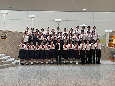 8月31日(日)西条市総合文化会館において、全日本合唱コンクール四国支部大会が開催され、本校のコーラス部員38名が参加しました。 「ホールの響きに合わなかった」という県大会での課題を克服しようと、連日暑い中、章光堂で練習を重ね、ハーモニーにも声量にも磨きをかけてきました。 今日の四国大会では、その成果を存分に発揮し、見事金賞をいただきました!全国大会出場です!本当におめでとうございます。全国の舞台でも皆さんの美しい歌声を響かせてきてください。附属中のみんなが、皆さんの健闘をたたえ、応援しています。
