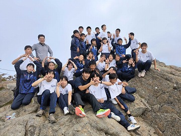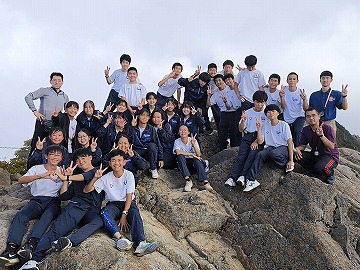 今日から2日間、2年生は石鎚登山研修です。 自然とふれあい、仲間とふれあい、自分自身と向き合って成長する、附属中学校の歴史ある伝統行事です。 1日目は、西日本最高峰の石鎚山に登りました。 山頂は、あいにく雲が出ており絶景とまではいきませんでした。それでも、仲間と一歩一歩登った道のりと山頂にたどり着いた喜びはひとしおでした。