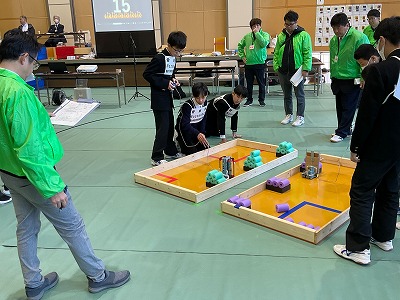 12月7日(日)、鳴門教育大学の体育館において、「創造アイデアロボットコンテスト中四国大会」が実施され、本校から科学技術部2チーム、生徒6名が参加しました。 基礎部門で出場したチームも、制御部門で出場したチームも、見事予選リーグを勝ち抜き、決勝トーナメントに進出しました。そして、中四国の強豪校と真剣勝負を繰り広げた結果、どちらのチームもベスト16で大会を終えたそうです。 チームで意見を出し合って、試行錯誤して一つのロボットを製作した経験や、力を合わせて戦った経験は、必ず次につながります。出場した生徒の皆さん、お疲れ様でした!