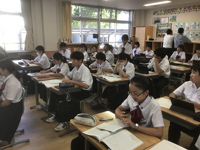今日は水曜日ですので、4校時は道徳の授業です。 全学年・全クラスで教育実習生が道徳の授業実践に取り組みました。教育実習がスタートして、今回で4回目の道徳の授業となります。1回目は担任の先生による示範授業。2回目・3回目は実習生による実践……と回数を重ねてきているので、授業の進め方がとてもスムーズになっていました。 また、授業の実践に慣れてくる中で、緩急をつけることもできており、感心しました。活発に意見を出す場面と、ぐっと沈黙して自分の考えと向き合う場面。これらを上手く使い分け、道徳的価値観を見つめ直すことができていました。