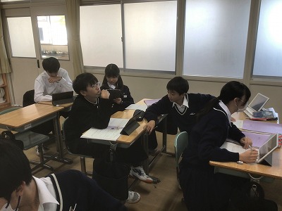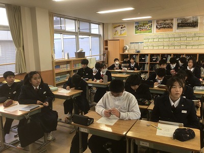11月28日(金)、6校時の1年生の授業をのぞいて来ました。総合的な学習の時間として、12月に行う「ようこそ先輩!」に向けての準備をしていました。 「ようこそ先輩!」とは、多様な業界で活躍されている本校の卒業生をお招きして、お話を伺う授業のことです。今年度は、6名の先輩方に来校していただけることになりました。社会的な課題に立ち向かう先輩方の姿を通して、働くことの意義や夢を追い求めることの大切さ、さらには主体的に人生を切り拓いていくことの重要性など、生徒たちが多くのことを学べるように、準備を進めていきます。 先輩方、本校の1年生のために貴重な時間を割いてくださり、本当にありがとうございます!