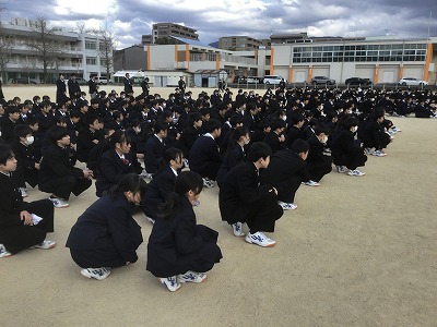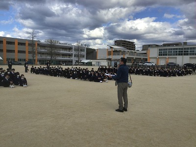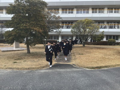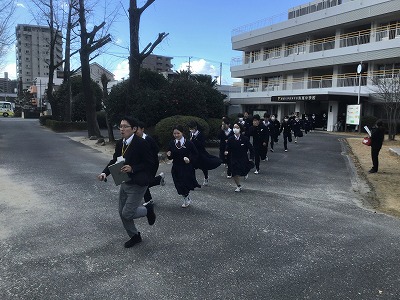 1月21日(水)5校時の後、抜き打ちの避難訓練を行いました。今回は、プレハブ1階で火災が発生したという設定でした。 生徒たちは、事前予告がない中でも、1・2学期の訓練での経験を生かして、非常にスムーズに避難することができていました。避難マニュアルや手順をただ知っているだけでなく、とっさに運用することができており、感心しました。 地震や火災は起きてほしくないですが、本校の生徒たちが「いつ起きてもおかしくない」という意識で生活しており、日常的な備えができていることを確認することができました。