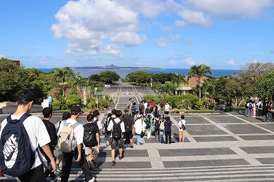 3年生の修学旅行は、3日目に入っています。 午前中に美ら海水族館で見学をした後、名護アグリパークで昼食のタコライスを食べたそうです。この後ホテルに戻り、マリンスポーツ体験を行う予定になっています。 お天気は最高だそうで、南国の空と日差しがうらやましいです。