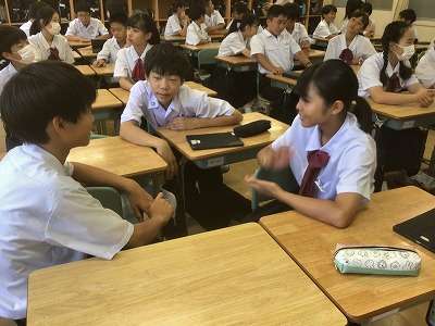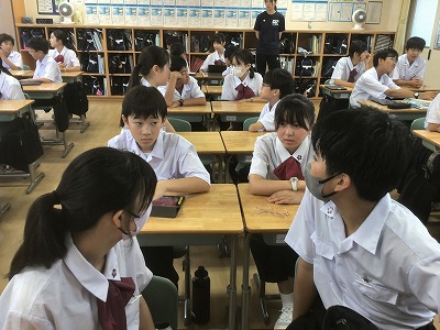 本日は、朝の時間を活用して、「デジタル・シティズンシップ教育」を行いました。 生徒たちは、「デジタル・ネイティブ世代」と呼ばれています。物心つく頃から、コンピュータやインターネットなどのデジタルテクノロジーに囲まれ、それらに触れるのが当たり前な環境で育ってきているからです。 そんな生徒たちに「デジタルテクノロジーは便利な反面、犯罪に巻き込まれたり、人を傷つけたりする危険性があるから、使用しないように」という話をするのは現実的ではありません。 したがって、生徒たちにデジタルツールの利点と使用上の注意点をよく理解させた上で、デジタル社会の一員としての自覚を高め、よりよい使い方について考えさせたいという思いから、「デジタル・シティズンシップ教育」に取り組むことになりました。今回は、その第1回でした。 生徒たちは、この思いをしっかり受け止めるとともに、日頃の自分たちのデジタルツールの使い方を振り返り、情報交換をしました。