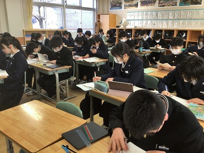 集中して取り組んでいる生徒、教え合いをしている生徒と様々でした。実力テストが、生徒たち全員にとって成果と課題を確認するきっかけになることを願っています。
