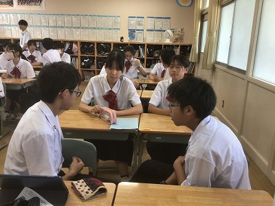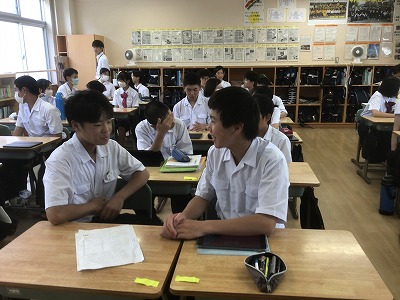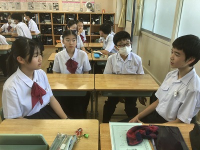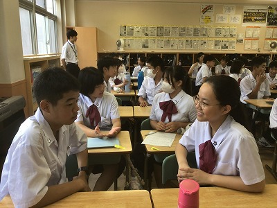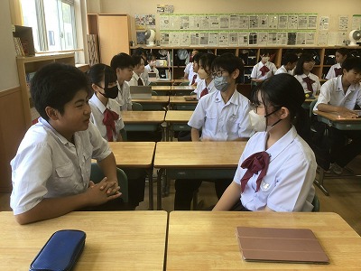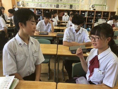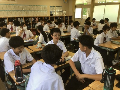 対話の質を上げるためには、相手の話を受け止めること、そして、その話を踏まえた上で新たな問いを立てることが重要です。問答ゲームを通して、生徒たちは、それらのことがしっかりとできていました。高めた力を日々の授業や学校生活に役立ててほしいと思います。