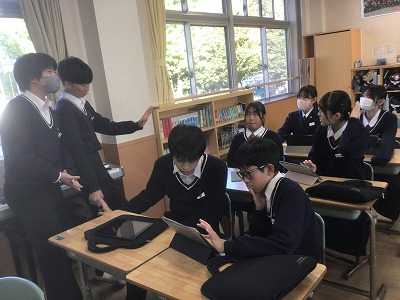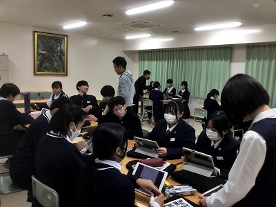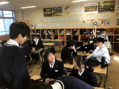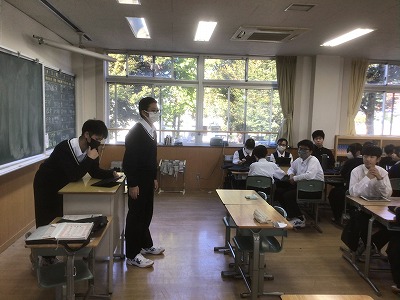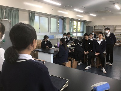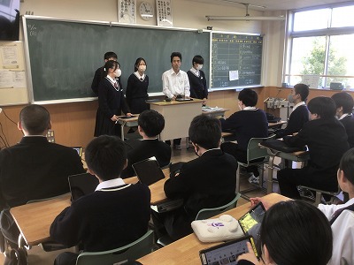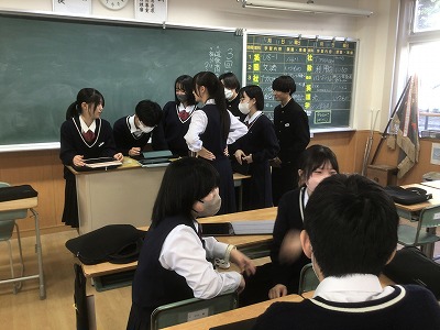 11月10日(月)、シン・学級を行いました。 シン・学級では、各学級8名ずつが異学年・同ブロックで集まり、縦割り班を編成して活動します。今年度は、「共生」というテーマのもと、異学年や地域、自然と共生するためのプロジェクトを計画しているところです。 代表者は、昼食時間にランチミーティングを行い、プロジェクトの場所や時間の重なりを解消しました。その後、6時間目に各シン・学級で集まり、12月3日(水)の当日に向けて細かな計画を練りました。3年生が司会進行を務めながら、生徒たちが試行錯誤しながら主体的に話し合う時間となりました。