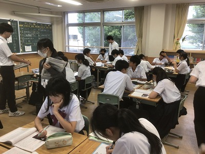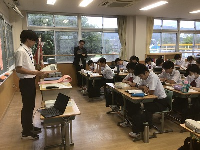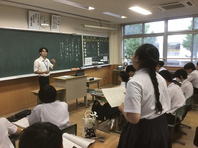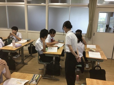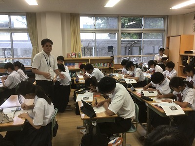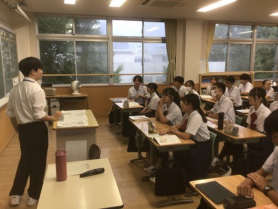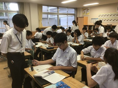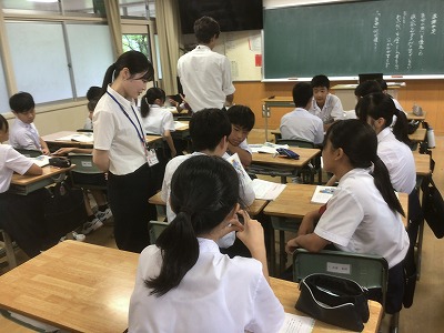 9月10日(水)、4時間目の授業をのぞいてきました。全学年・全学級、教育実習生が道徳の授業実践に取り組んでいました。 各教科で授業実践が続いているので、授業を1時間、2時間と経験する中で、発問の仕方や、構造的な板書、さらには生徒への切り返しなど、上達してきていると感心しました。 一方で、道徳の授業であるため、「取り扱っている教材から学べる道徳的価値」と「よりよく生きるための道徳性」をいかにつなげるかで、苦心していたと思います。教材を通して学んだことを、どこか遠くにいる誰かの話で終わらせるのではなく、自分自身を見つめ直したり、広い視野から多面的・多角的に捉え直したりして、自分事として考えを深めていくことが道徳の授業における大切なポイントです。 教壇に立ち、学級担任になれば、毎週行う道徳の授業です。課題になった部分については、大学に持ち帰り、よりよい道徳の授業実践につなげてほしいと思います。