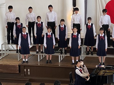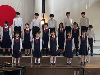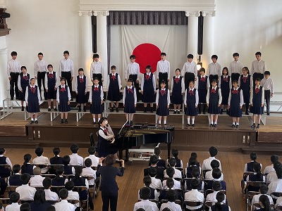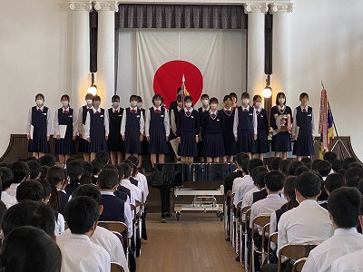 また、四国大会を勝ち抜き、週末に香川で行われる全日本合唱コンクール全国大会に出場するコーラス部の壮行会を行いました。圧巻の歌声です。歌に思いを乗せて聴く人に届けようとする姿や美しいハーモニーに心を揺さぶられる感動がありました。