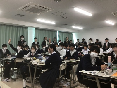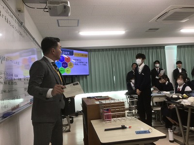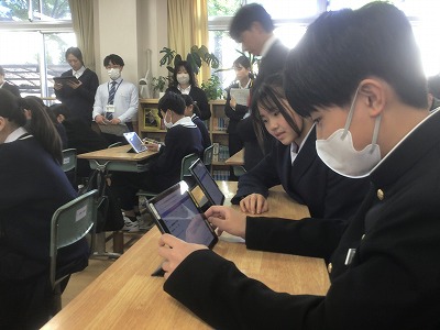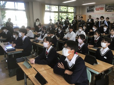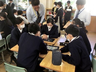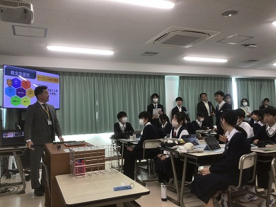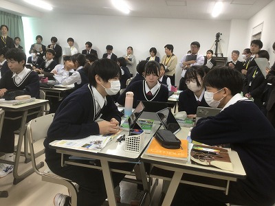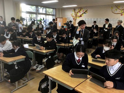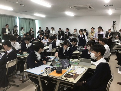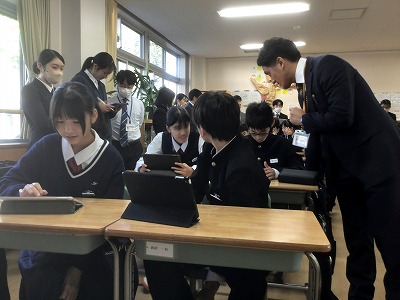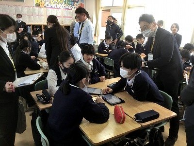 午後は、「特別活動授業研究会」と題して、1年A組と2年A組の学級活動を公開しました。 1年A組では、「マイキャリア・シミュレーター」を活用した実践を行いました。生徒が主体的に進路を選択し、その結果を疑似体験するというものです。生徒たちは、「なぜその職業を選んだか」を仲間と共有し、人生における選択の大切さと、一人一人異なる価値観があることを実感することができていました。