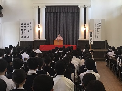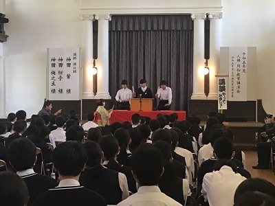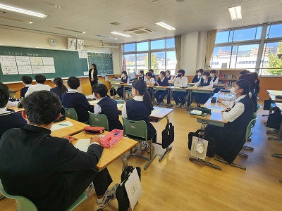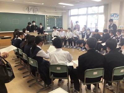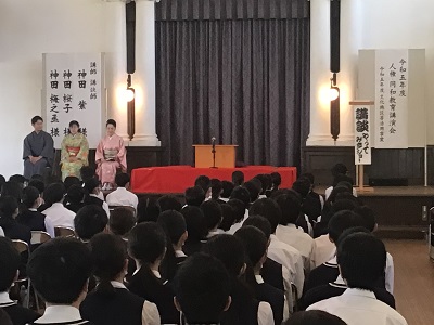 今日は人権について考える1日でした。 午前中は講談師の神田紫さん、神田紫さん、神田桜子さん、神田梅之丞さんの講演でした。日本の文化である講談を経験する中で、自分の意見をしっかり持つことの大切さ等を学びました。  午後からは各学級で道徳の参観授業を行いました。 1年生はいじめ問題について意見交換を行いました。 2年生は部落差別問題について、意見交換を行いました。