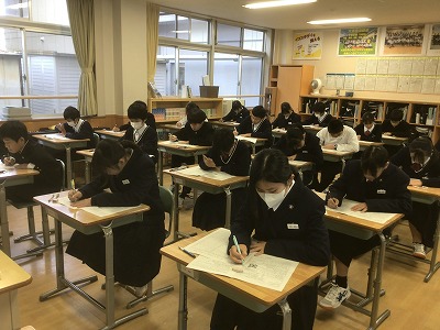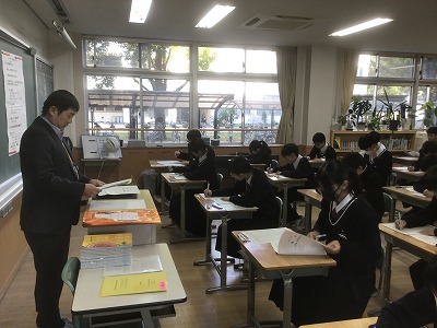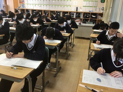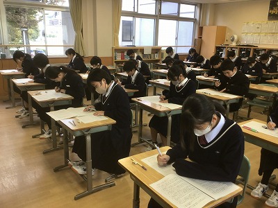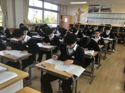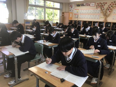 11月17日(月)~19日(水)の3日間、本校では実力テストを実施しました。 附属中学校の生徒たちは、知的好奇心が旺盛です。授業中は学習課題の解決を通して、各教科のものの見方・考え方を働かせながら、資質・能力を高めています。また、休み時間には、その授業で学んだことや話し足りなかったことについて会話する姿が多く見られます。そして、帰宅してからは、遅くまで家庭学習に取り組んだり、学習塾に通ったりして、学力の定着を図っている様子が伺えます。 3日間のテストでは、それらの学びを発揮しようと、生徒たちは一生懸命取り組みました。