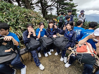 9月26日(金)、2年生が石鎚登山研修を行いました。石鎚山は、標高1982mある西日本最高峰です。2年生は、山頂までの道を一歩一歩踏みしめながら、豊かな自然や風景、そしてその険しさを味わいました。 苦労して登り切ったからこそ、山頂での思いは格別だったと思います。目標達成の道のりも同じです。小さな努力では、小さな目標しか達成することはできません。地道な努力を継続することでこそ、大きな目標を成し遂げることができます。今日の価値ある経験を、学校生活でも生かしてほしいと思います。