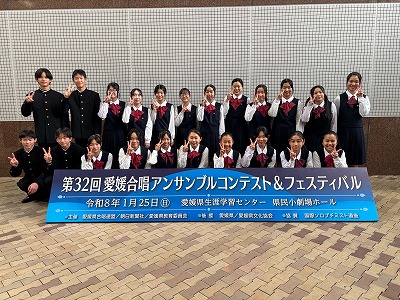 【コーラス部】 愛媛県生涯学習センターで「愛媛合唱アンサンブルコンテスト」が開催され、本校のコーラス部が参加しました。