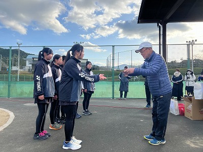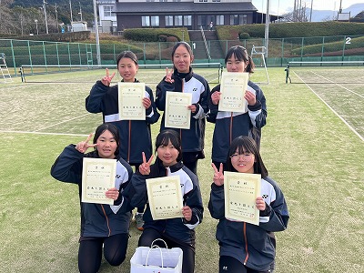 【女子ソフトテニス部】 八幡浜・大洲地区運動公園テニスコートにおいて、「愛媛県中学生ソフトテニス大会(団体戦)」が実施され、本校の女子ソフトテニス部が参加しました。