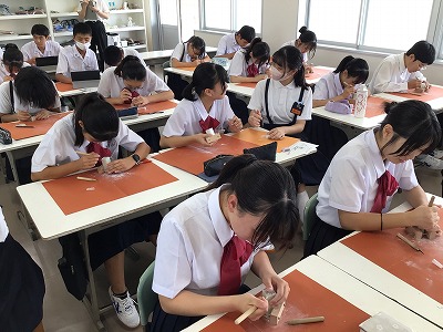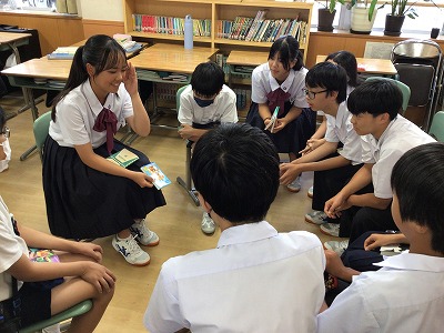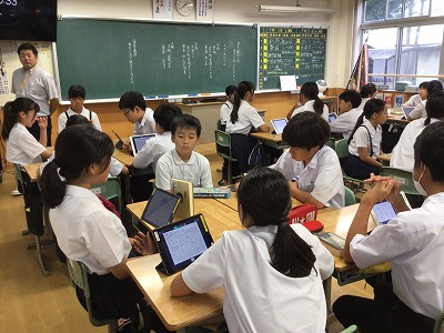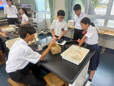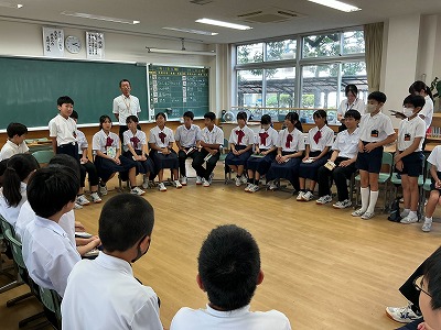 本日5時間目は、附属小中連携学校見学会で附属小学校の6年生が各授業を見学に来ました。各授業では、見学だけではなく実際に授業に参加をしたり、中学生と一緒になって課題に取り組んだりしました。 小学生に対して授業の説明したり、一緒に活動に取り組む附中生の様子がたくさん見られました。また、小学生は「中学生はたくさんの語彙を使っていてすごいと思った。」や「中学生の説明が分かりやすかった。」など授業を通して、多くの成長の気付きを感じていました。 また、部活動にも参加をして一緒に汗を流すことができました。