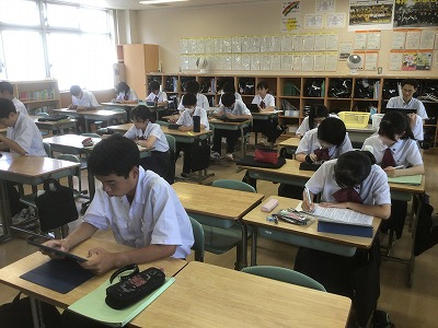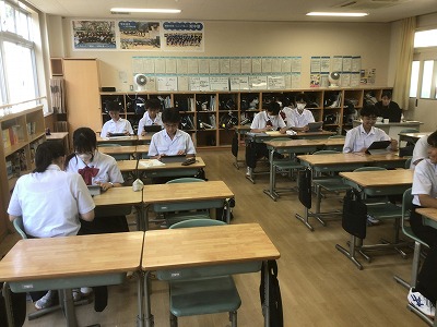 6月27日、来週からスタートする職場体験学習に向けて、2年部で全体指導と事前訪問を行いました。 午後から実際に事業所に行って、担当者の方にご挨拶をしたり、時間や持参物の最終確認をするため、生徒たちは緊張した面持ちで全体指導に臨んでいました。
