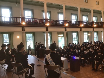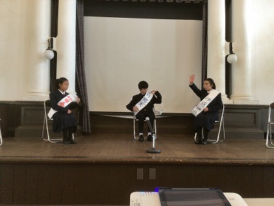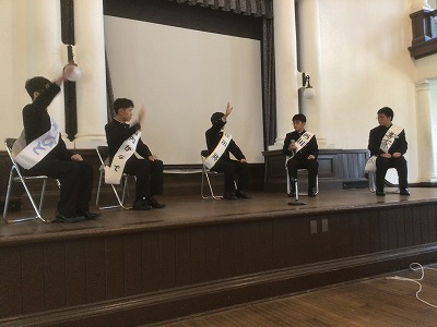 本日の投票で結果は出てしまいますが、これまでの選挙活動や政見放送、さらには討論会を通して、立候補者の皆さんの「全校生徒のために、附属中学校のために、自分の力を尽くしたい!」という思いはしっかり伝わりました。誰が当選しても、素晴らしい生徒会活動を展開してくれると思います。 |