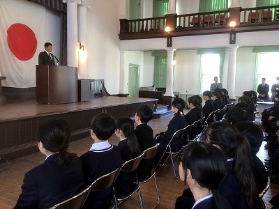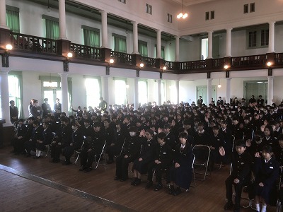 続いて、始業式がありました。校長先生のお話では、「昔から『1月は行く。2月は逃げる。3月は去る。』とは言いますが、3学期は本当にあっという間です。1日1日を大切に過ごしましょう。」というお言葉をいただきました。