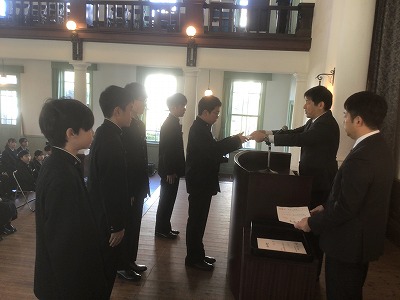 新年明けましておめでとうございます。本年もよろしくお願いいたします。 本校では、本日1月7日(水)から新学期がスタートしました。 まずは、冬休み中の表彰伝達がありました。