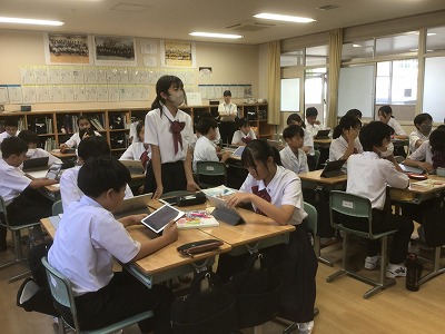 本日は、6校時の1年生の授業をのぞいてきました。 中学校に入学して半年が経過し、落ち着いた授業の雰囲気になってきています。ただし、対話や発表の際は、積極的に意見交換を行い、学びを深めています。 日曜日からは、大洲宿泊研修があります。しっかり準備を行うとともに、体調を整えて当日を迎えてほしいと思います。