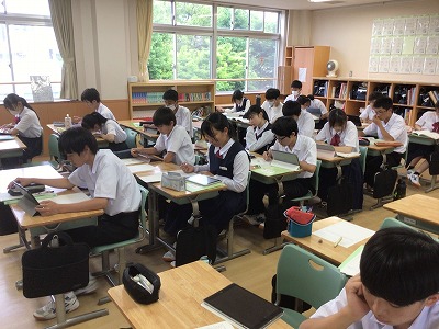 5月30日(金)の6校時は、各学年で総合的な学習の2時間目が実施されました。 3年生は、「行く河(探究)」の続きを行いました。前回は昨年度の学びをもとに、新たな問いを立てたので、今回は、その問いを見直すとともに、解決に向けての仮説を立てました。探究的な学びにおいて、この「問い」と「仮説」はとても大切です。課題解決の筋道、見通しを持つことにつながるからです。 真剣に、「問い」を見直し、「仮説」を設定する3年生の姿が見られました。