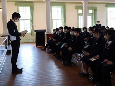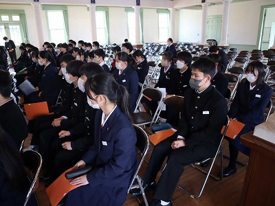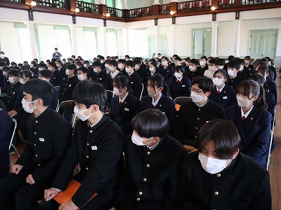 2月4日(水)・5日(木)の2日間は、私立高等学校の一般入試が行われることになっており、本校からも多くの3年生が受験します。したがって、今日の6校時は章光堂で事前指導がありました。 全体での話が終わると、各学校ごとに分かれて集合時間や集合場所、受験スケジュール、持参物の確認を行いました。 受験に臨む生徒たちの目は真剣そのもので、やる気に満ち溢れていました。日頃の授業や家庭学習で学力を高めてきた皆さんなら、しっかり実力を発揮できるはずです。 また、今回受験しない生徒たちは、居残りでの自習となります。受験に挑む仲間たちの頑張りを応援しつつ、自己の学力向上や課題克服に向けて、集中して学習に取り組んでほしいと思います。 3年生の皆さんにとって、充実した2日間になることを願っています。