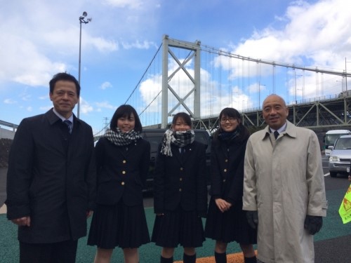 海風が体に突き刺さり、体感温度0度の中、生徒達はコートのない格好で、バスから飛び出していきました。